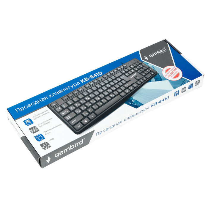 Клавиатура Gembird KB-8410, мембранная, проводная, USB, черный (KB-8410)