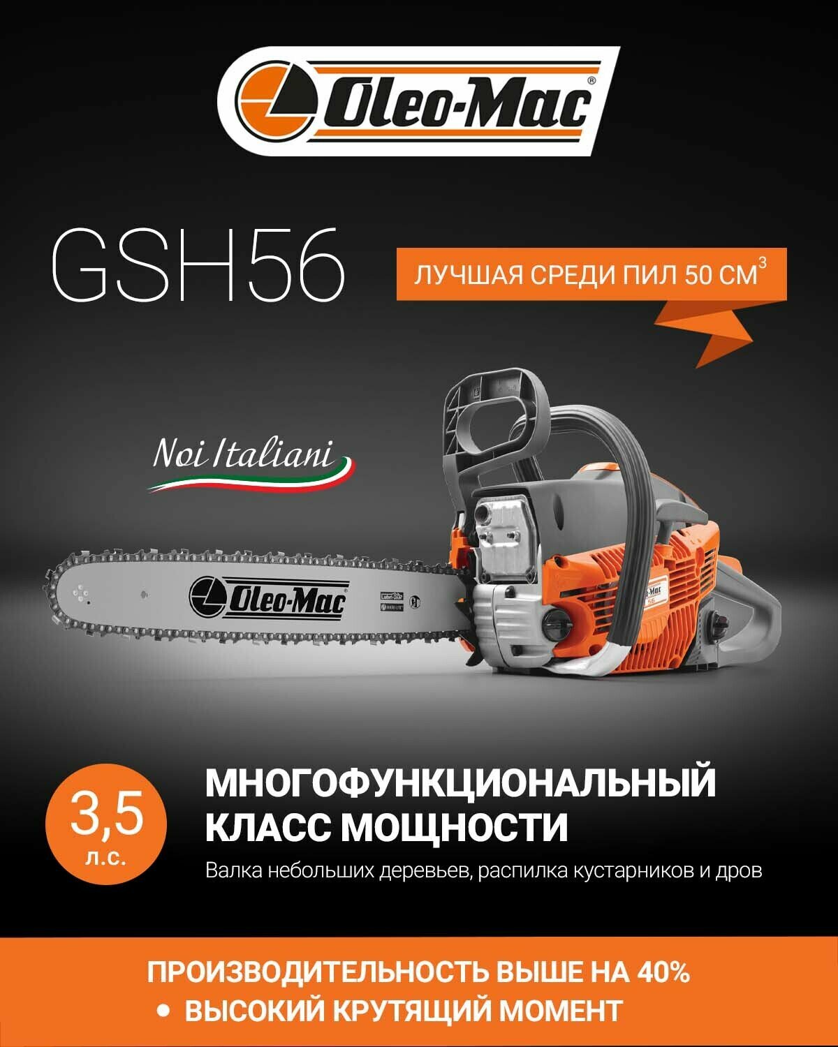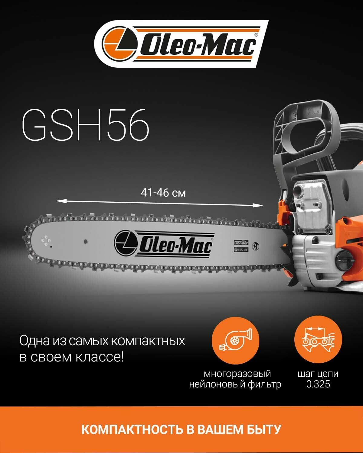 Бензопила цепная Oleo-Mac GSH 56 Easy Start шина 46 см./18", 3.5 л.с.