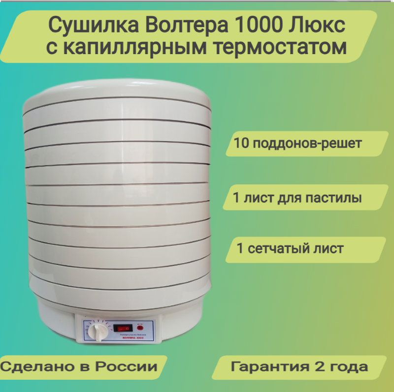 Сушилка волтера 1000 Люкс с термостатом. Комплект:10 поддонов+1 лист для пастилы+1 сетчатый лист интересное: