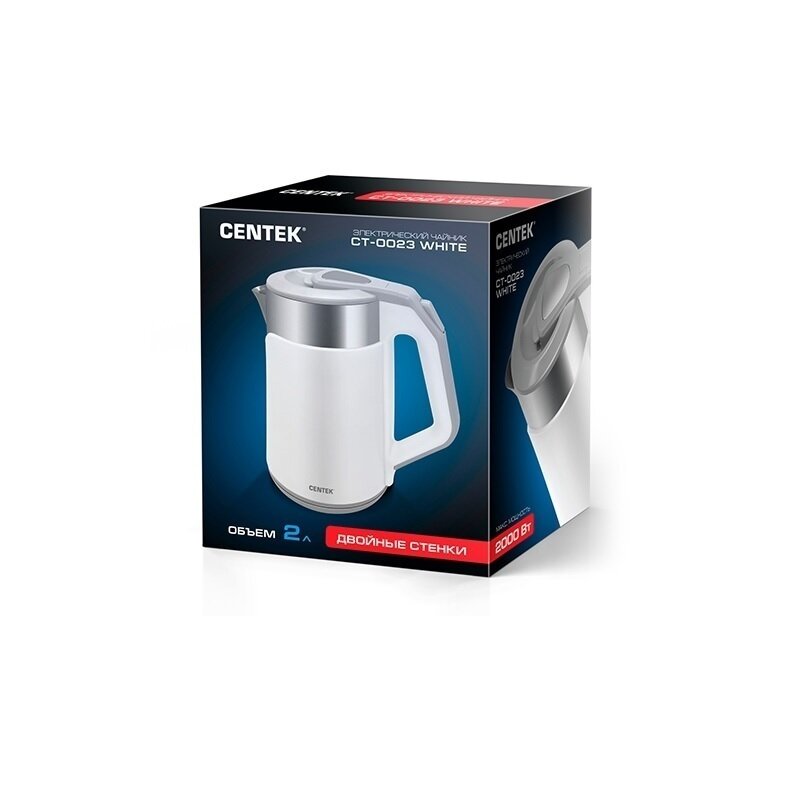 Чайник Centek CT-0023 White 2.0л <2000W> двойн. корпус - сталь+пластик, двойная стенка, сохран тепла