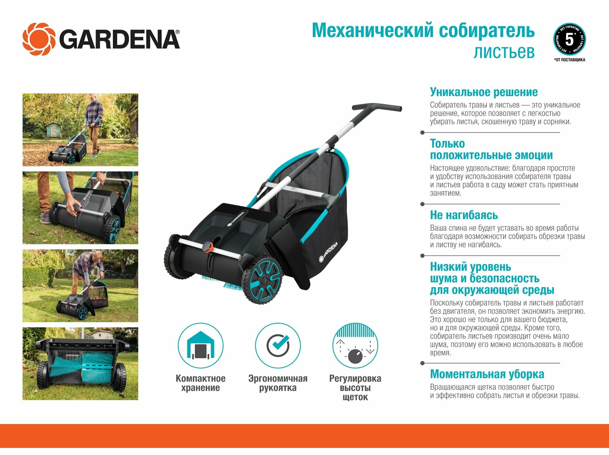 Механический собиратель листьев Gardena 03565-20.000.00 интересное: