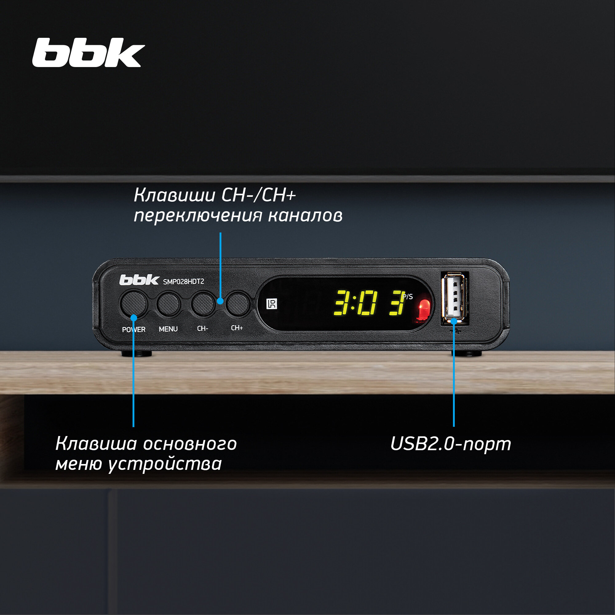 Ниже Вы можете прочитать отзывы на Цифровой телевизионный DVB-T2 ресивер BBK SMP028HDT2 черный, HDMI выход, DVB-T/T2, USB флеш, пульт ДУ, дисплей, ознакомится с подробными характеристиками, посмотреть интересные обзоры и фотографии на Цифровой телевизионный DVB-T2 ресивер BBK SMP028HDT2 черный, HDMI выход, DVB-T/T2, USB флеш, пульт ДУ, дисплей.
