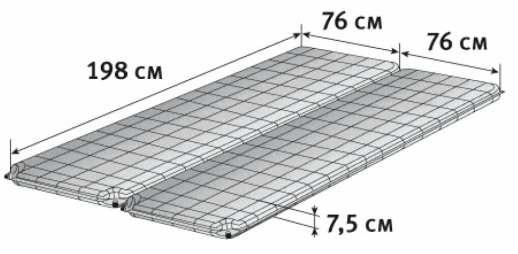 | Минусы: | В описании не указано, что боится воды. Ограничение по весу 120 кг. Распаковал, открыл все клапаны, жду уже сутки. Один коврик начал расправляется, второй не хочет. Пока не теряю надежды. |