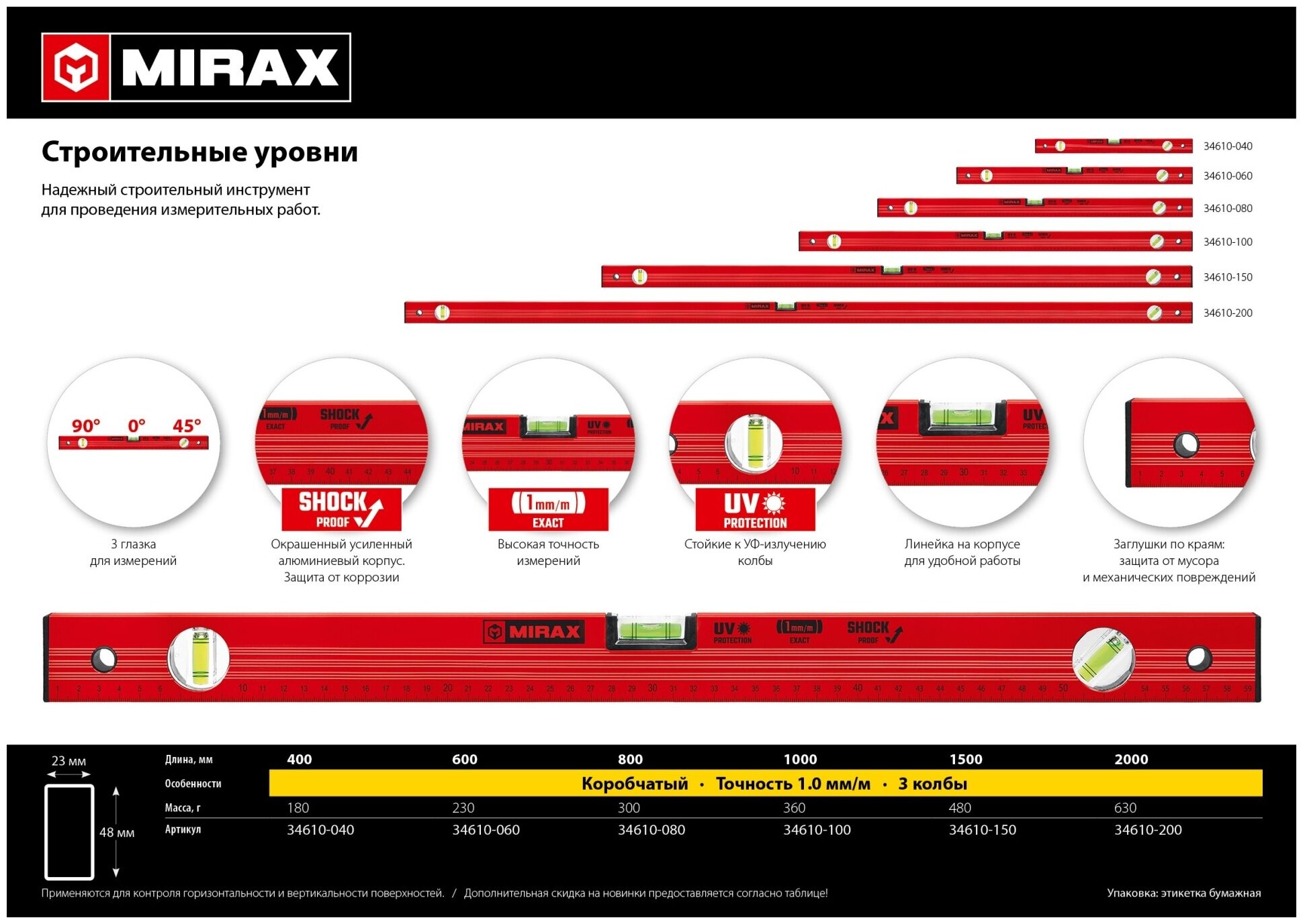 Ниже Вы можете прочитать отзывы на Магнитный строительный уровень MIRAX 800 мм 34611-080, ознакомится с подробными характеристиками, посмотреть интересные обзоры и фотографии на Магнитный строительный уровень MIRAX 800 мм 34611-080.