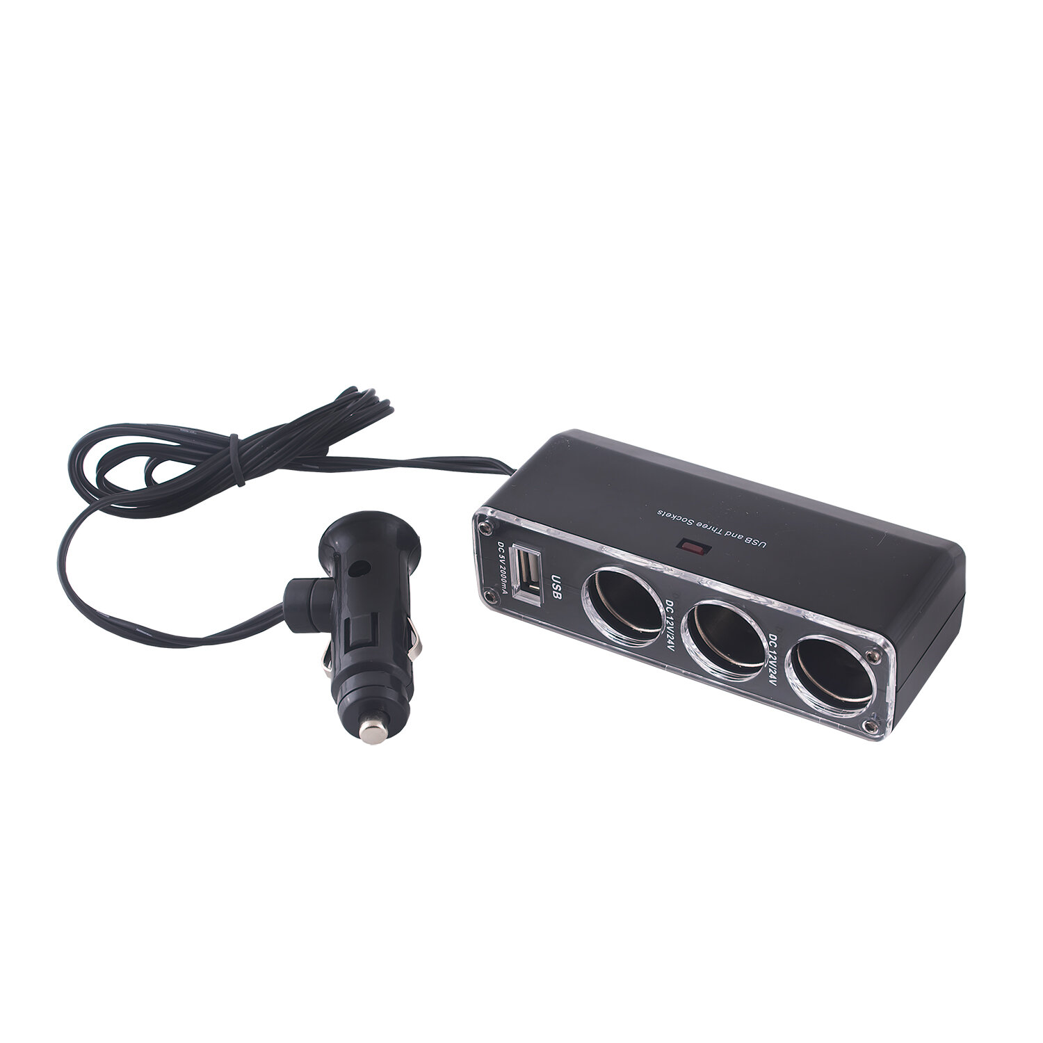 Разветвитель прикуривателя 3 гнезда+USB Черный предохранитель 5А, USB 2000mA S02301024
