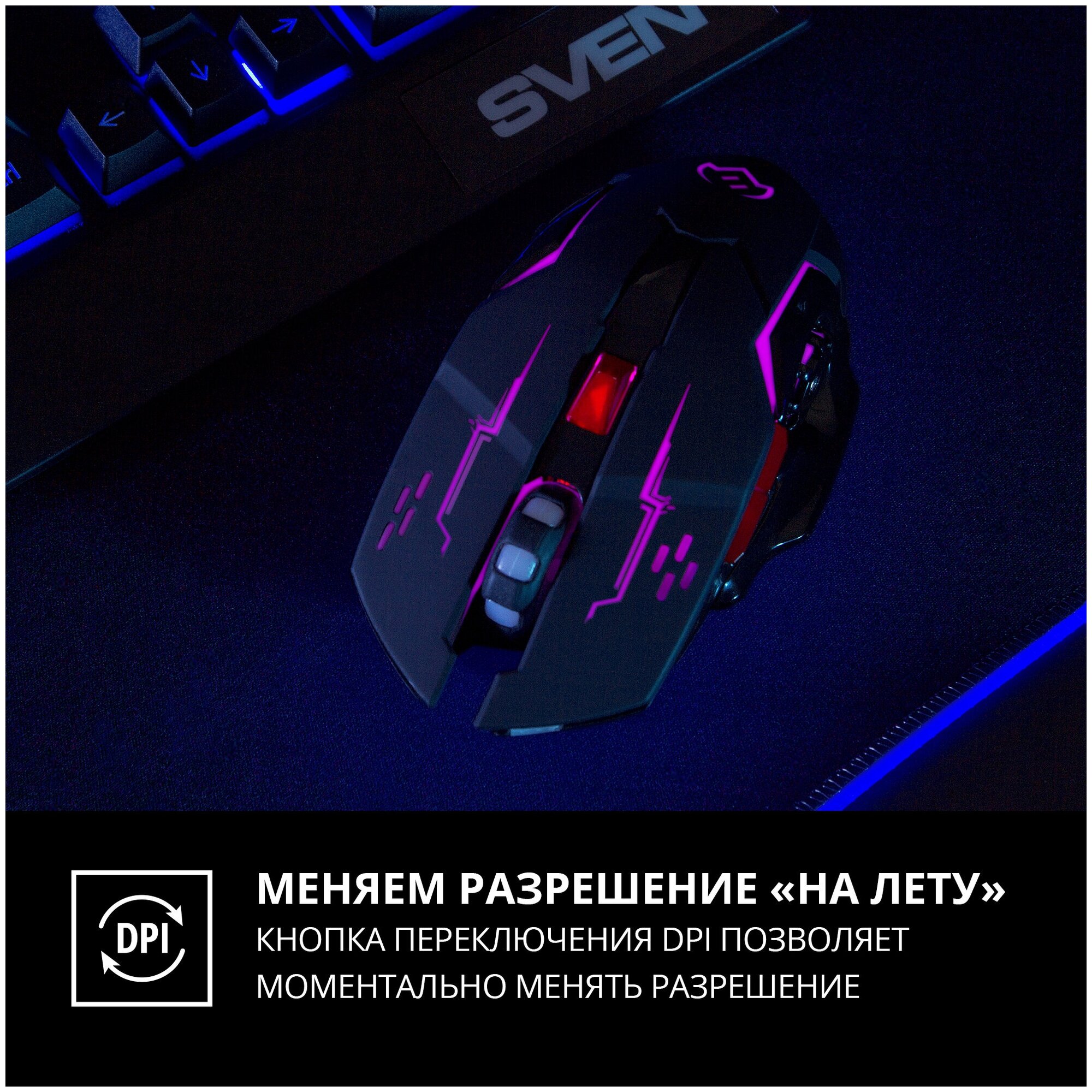 Игровая мышь SVEN RX-G930W (бесшумн. кл., 5+1кл. 800-2400 DPI, ST, подсв., игров. упак)