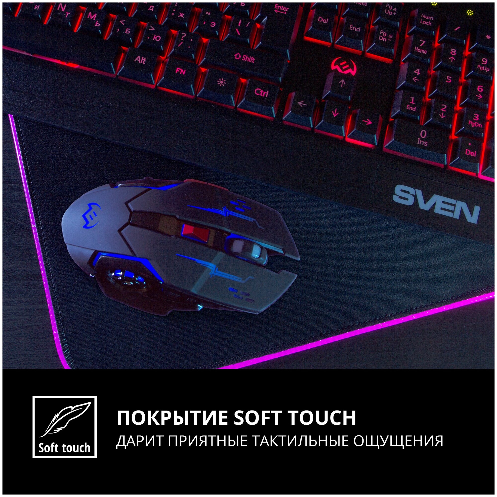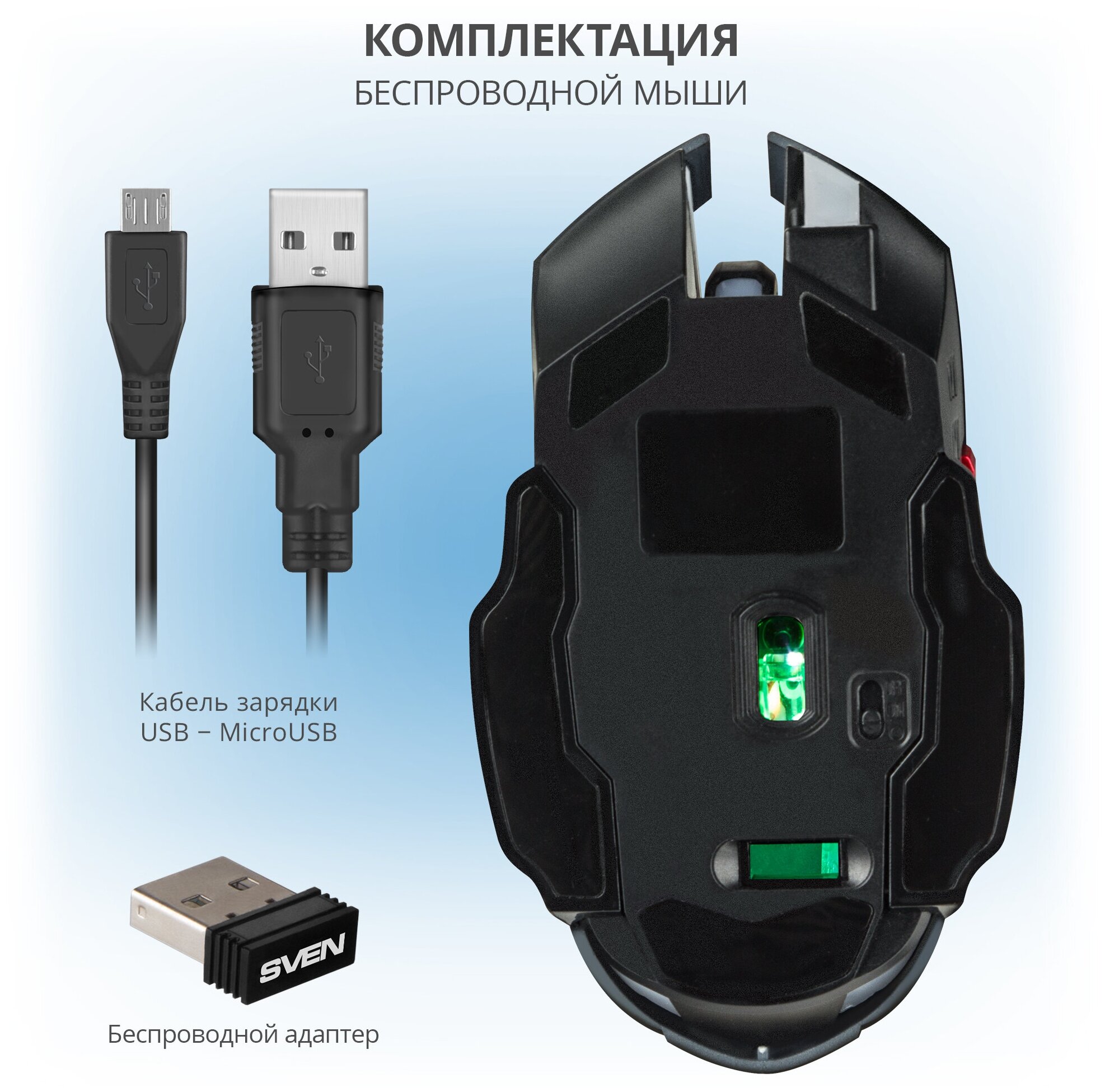 Игровая беспроводная мышь SVEN RX-G930W чёрная (2.4 Ггц, 6 кнопок, 1600 dpi, USB, Soft Touch, RGB подсветка)