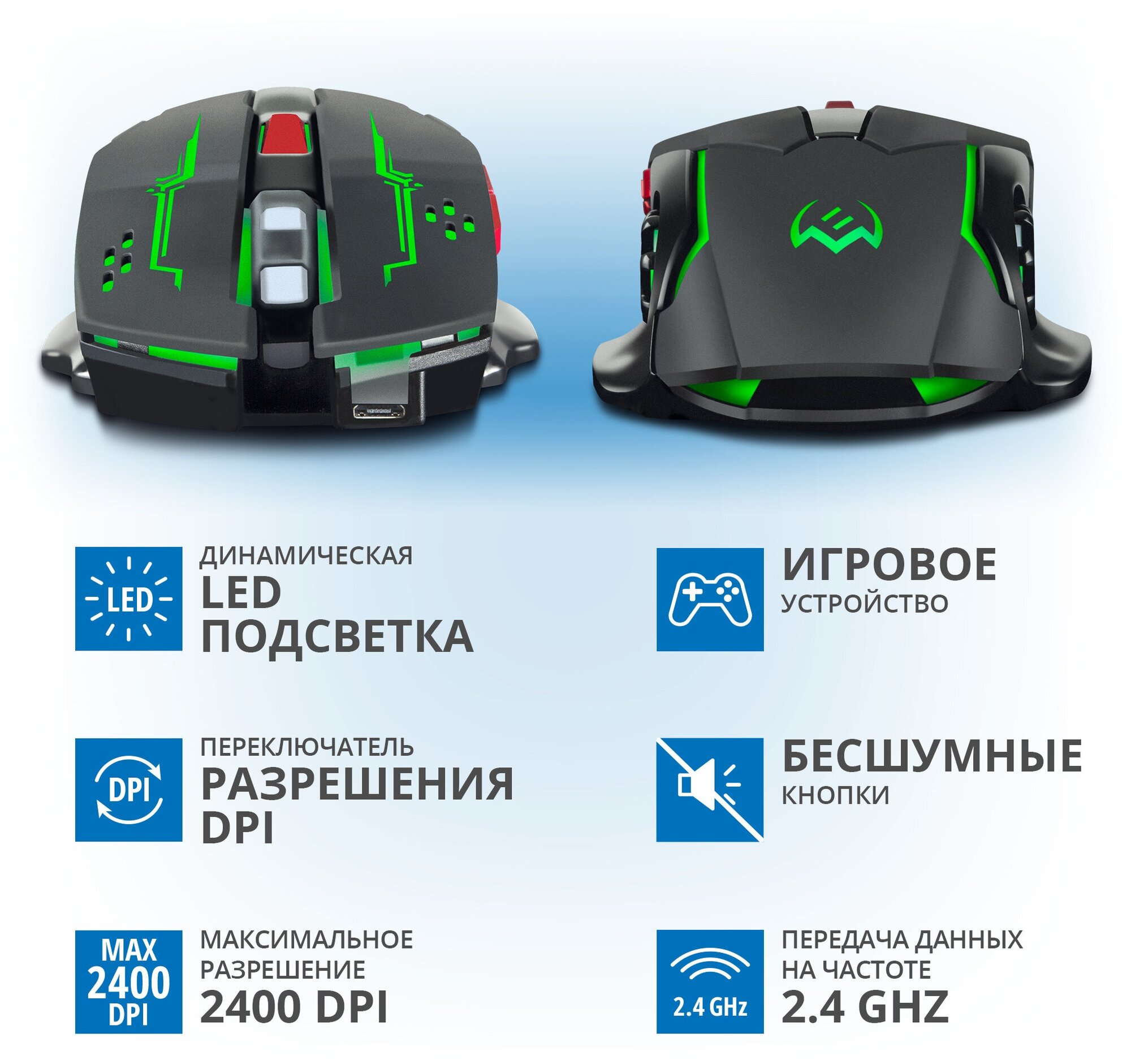 Беспроводная игровая мышь RX-G930W (бесшумн. кл., 5+1кл. 800-2400 DPI, ST, подсв., игров. упак)