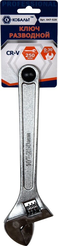 Купить Ключ разводной кобальт 250 мм, ширина захвата 30 мм, CR-V (1 шт.) подвес 647-529
