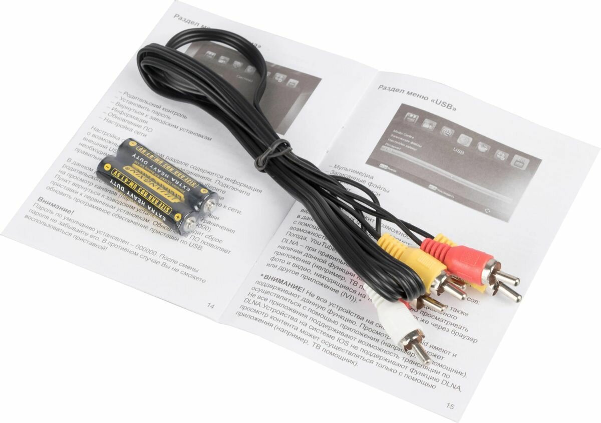 | Комплектация | Ресивер; Пульт ДУ с батарейками; Аудио-видео шнур; Руководство по эксплуатации с гарантийным талоном |