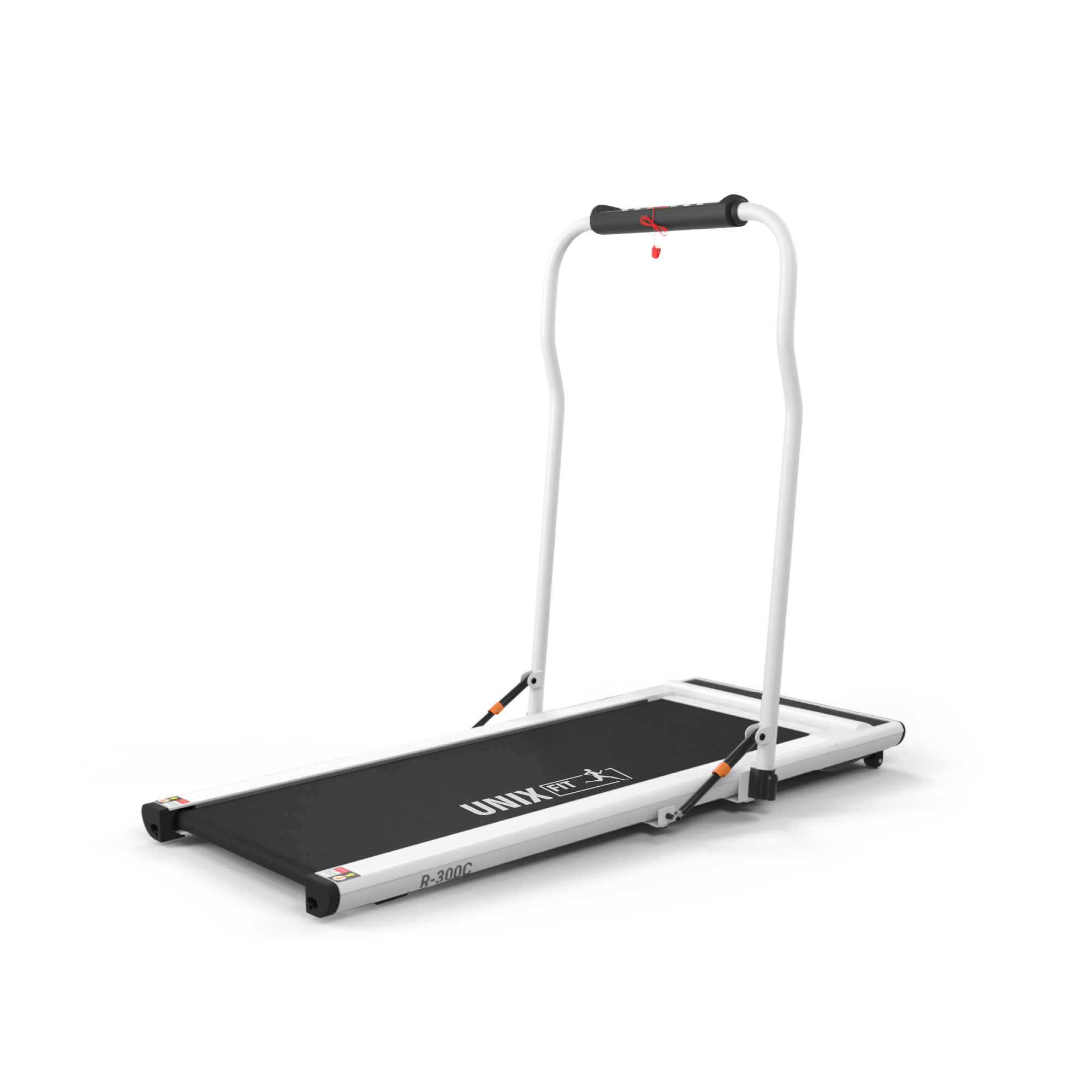 Беговая дорожка Unix Fit R-300C White с поручнем, 1.5 л.с., до 100 кг, беговое полотно 120x46 см, скорость 0.8 - 12 км/ч, 6 плоских эластомеров UNIXFIT