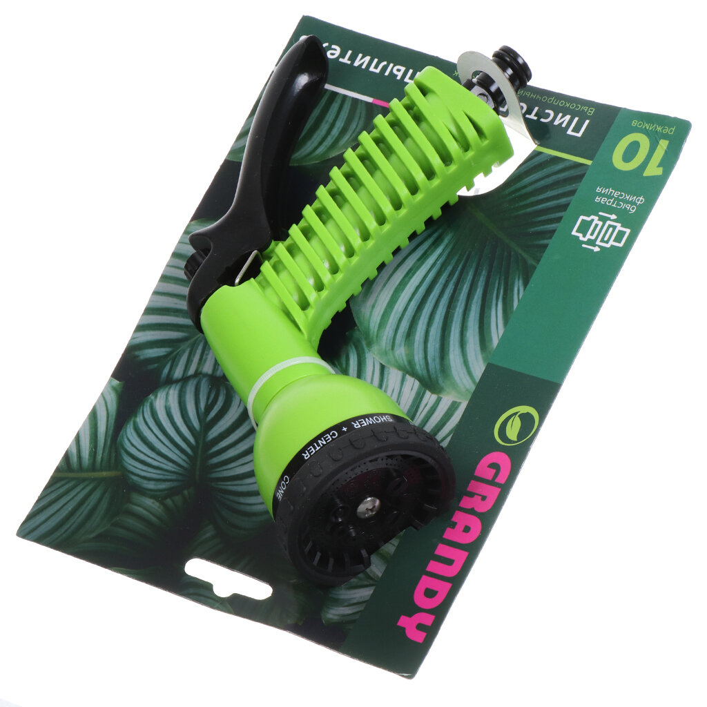 Пистолет-распылитель 10 режимов, Grandy, быстросъемный, в блистере с клипсой