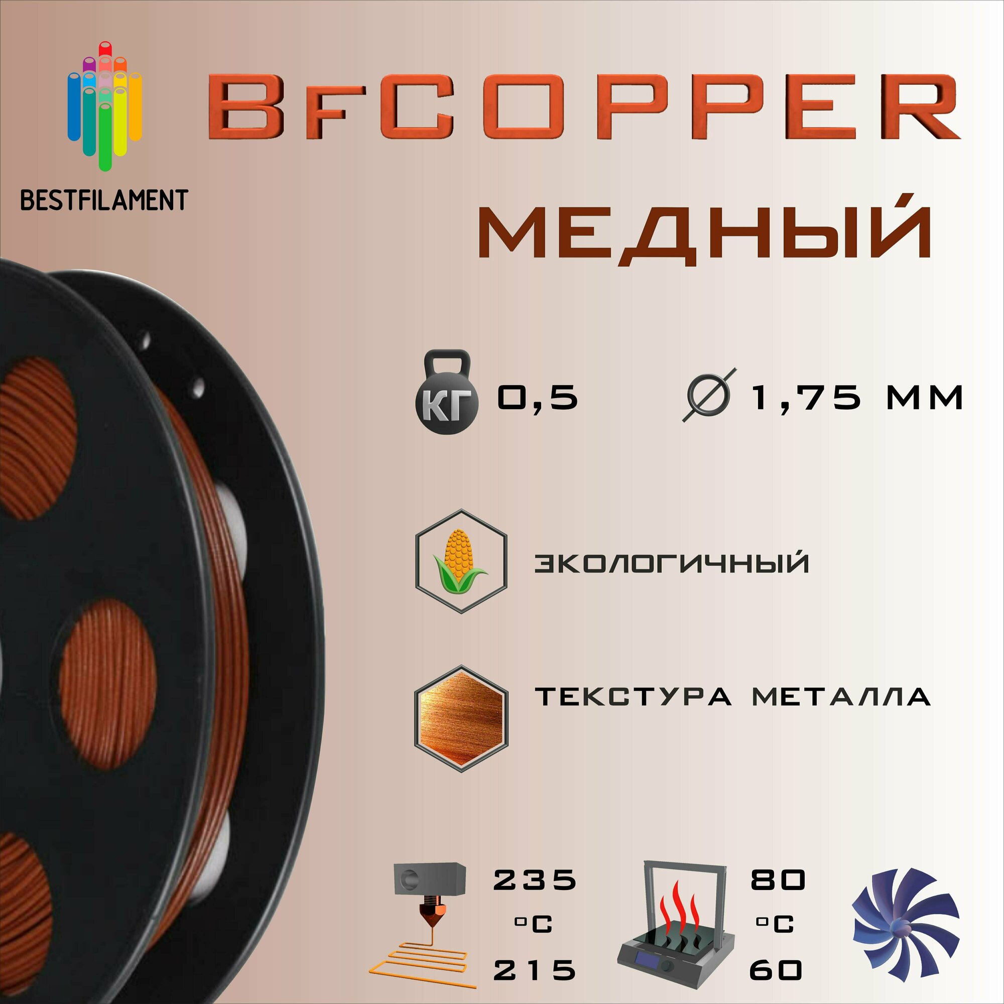 Пластик для 3d принтера BFCopper медный 1,75мм BestFilament, 0,5 кг