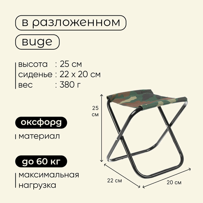 Купить Стул туристический, складной, р. 22 х 20 х 25 см, цвет хаки