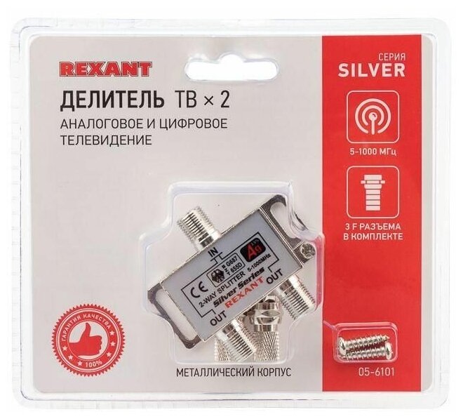 Делитель ТВ х 2 + 3шт. F BOX 5-1000 МГц Silver (05-6101) | код 05.01 | REXANT (3шт.в упак.)