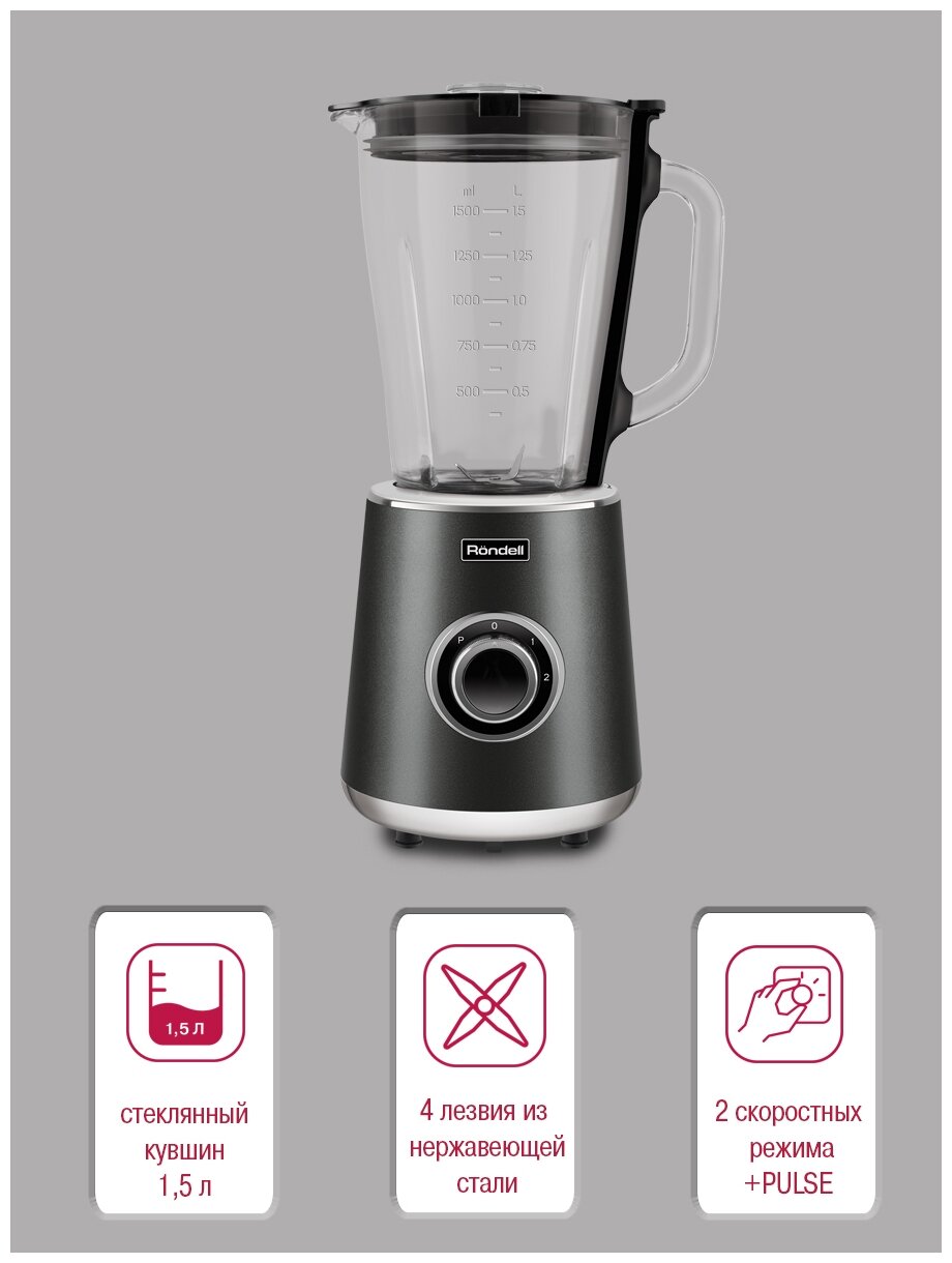 Блендер Rondell 1251-RE-01, стационарный, черный/серебристый