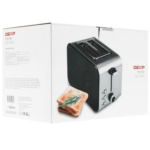Тостер DEXP TSS-3000 черный, 850 Вт, тостов - 2, подогрев, размораживание