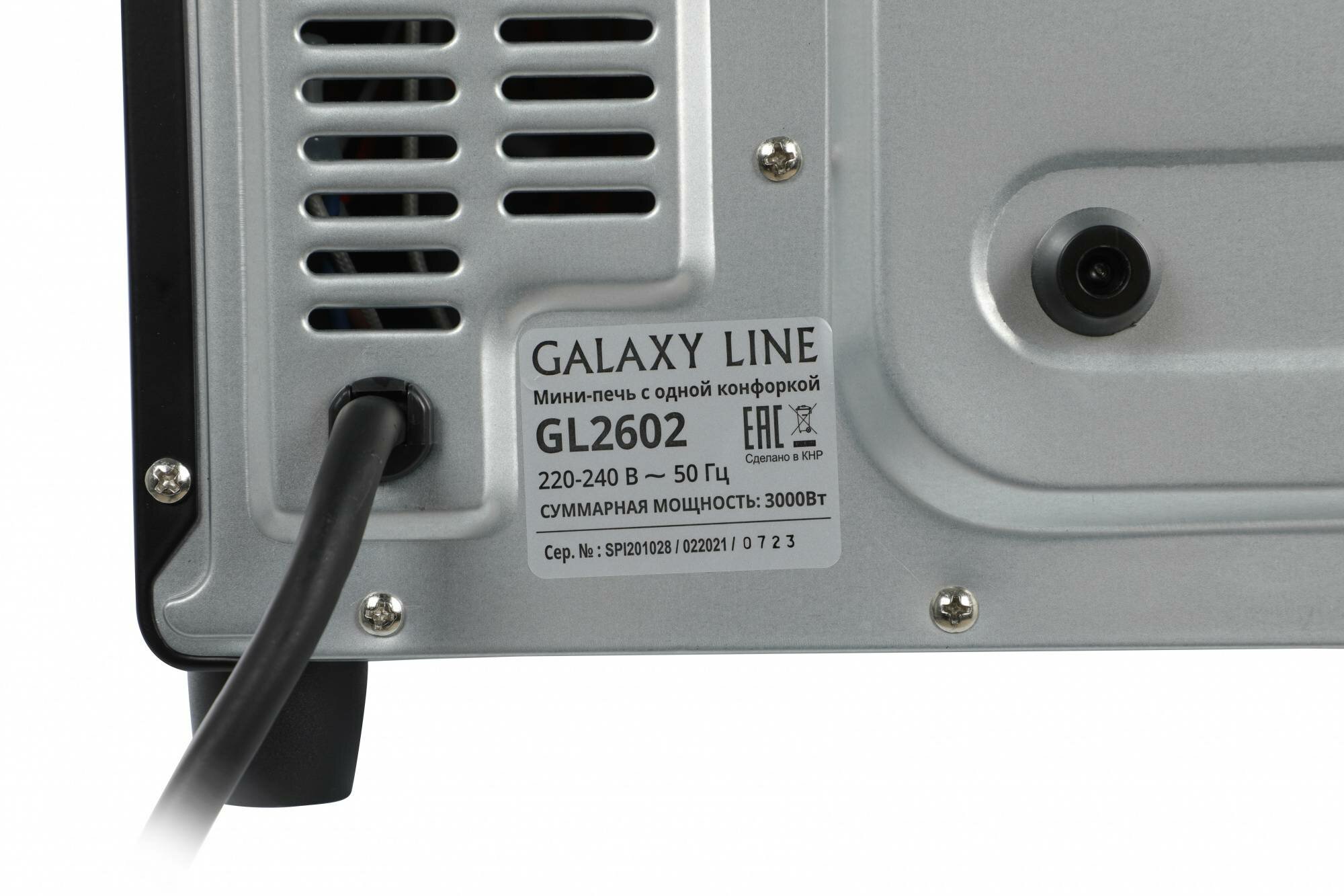 GALAXY LINE GL 2602 Мини-печь с одной конфоркой, объем 38л, 3000 Вт (мощность духовки 2000 Вт, мощность конфорки 1000 Вт), диаметр конфорки 185 мм ,3 режима работы духовки, дверца из жаропрочного стекла, регулировка температуры духовки от 100 °С до 250 °С