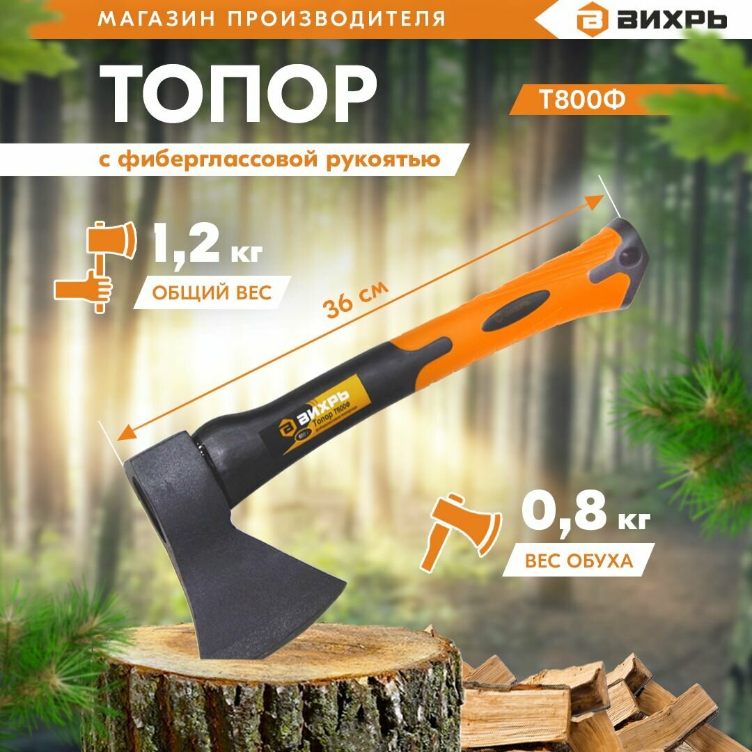 Топор 0,8 кг с фиберглассовой ручкой Вихрь вихрь Т800Ф | цена за 1 шт интересное: