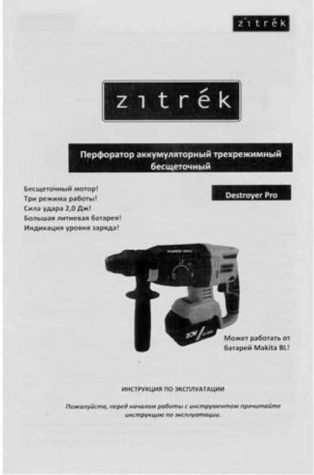 Zitrek Перфоратор аккумуляторный Destroyer Pro 20В 063-4063 .