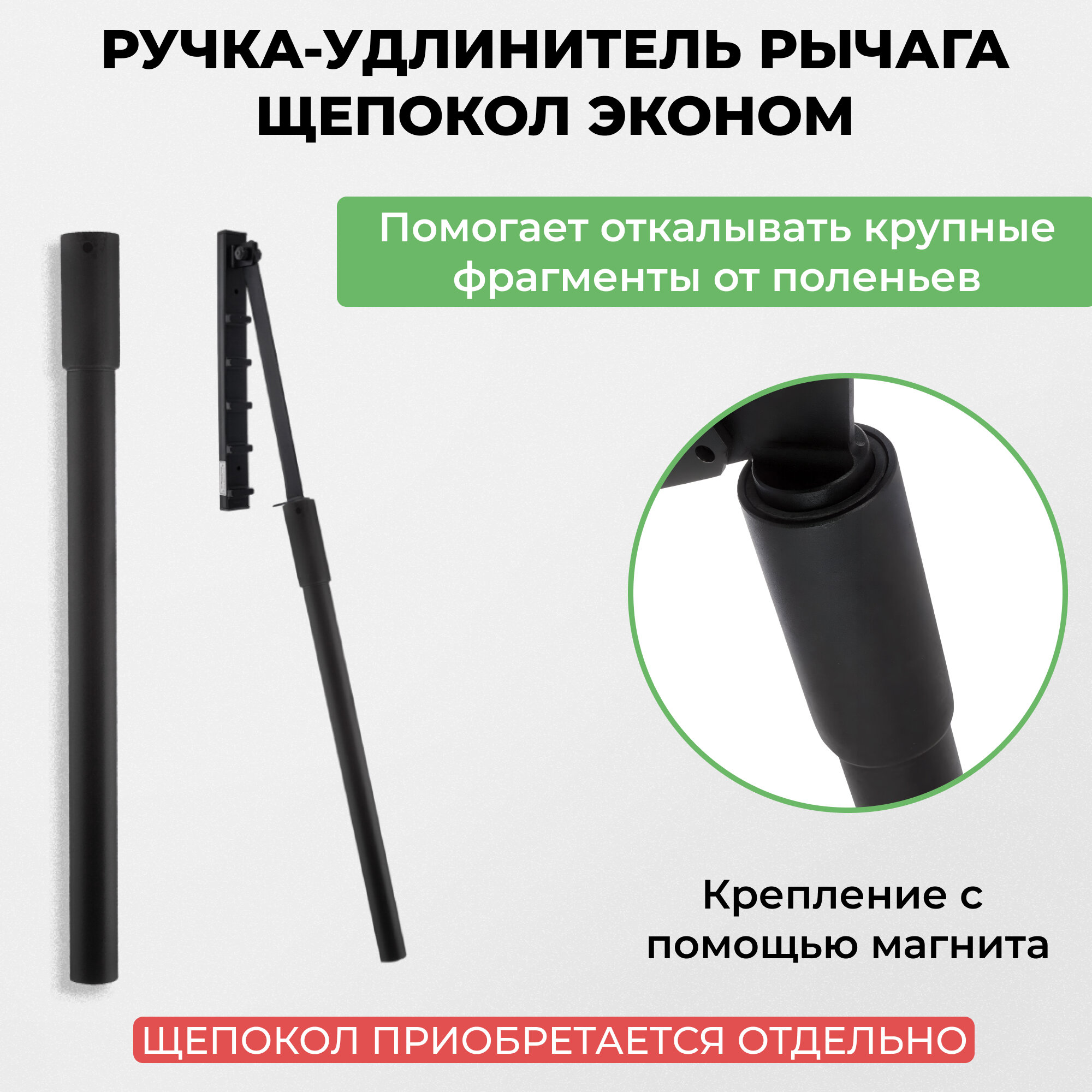 Ручка-удлинитель KOLUNDROV металлическая на магните для щепокола-рычага Стандартный и Эконом, садовая техника для дачи и дома