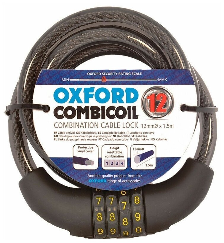 Замок троссовый Oxford Combi Coil 12 кодовый черный интересное: