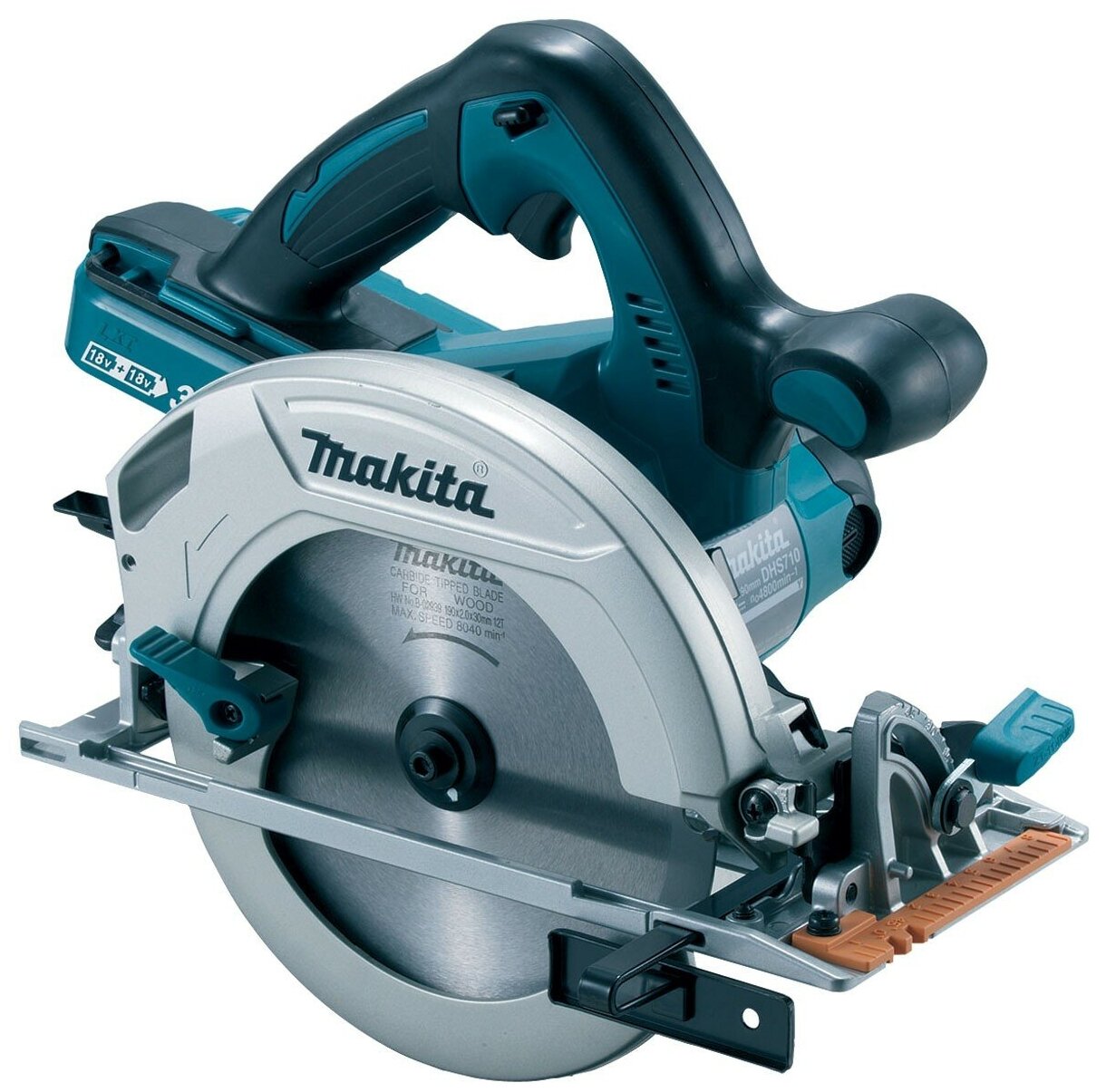 Пила циркулярная MAKITA DHS710Z 36В д/2-х акк. 18В LI-ION 4800об/м ф190мм 69мм 4.7кг без АКК.и ЗУ