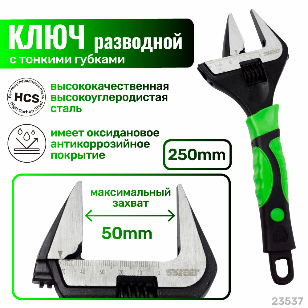 Ключ разводной с тонкими губками 250 мм GREEN SKRAB 23537