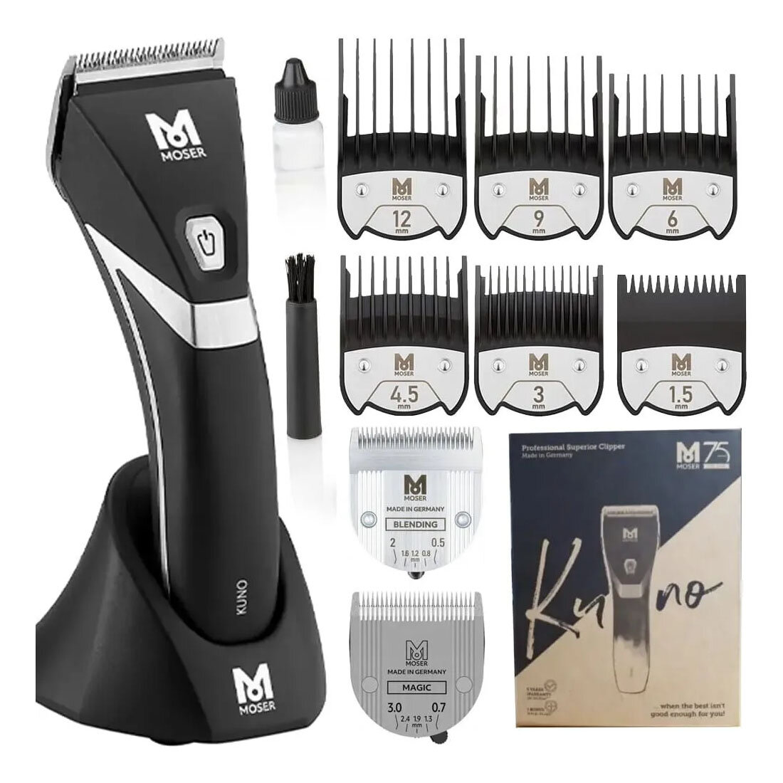 Купить MOSER Машинка для стрижки акк\сеть KUNO черная c магнитными насадками(1,5; 3; 4,5; 6; 9 и 12мм)