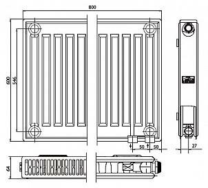 Радиатор Kermi с нижней подводкой FTV тип 12 0608 600x800x64 мм