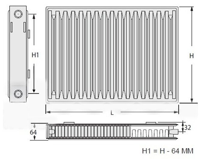 Радиатор Kermi с нижней подводкой FTV тип 12 0605 600x500x64 мм