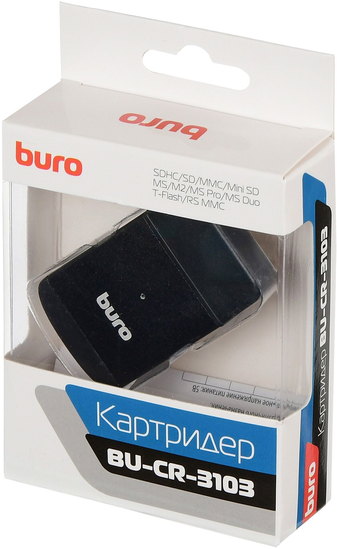 Устройство чтения карт памяти USB2.0 Buro BU-CR-3103 черный (TF,SD,SDHC,mini-SD,MS,MS Pro,MS Duo,MS Micro M2,MMC,RS-MMC)
