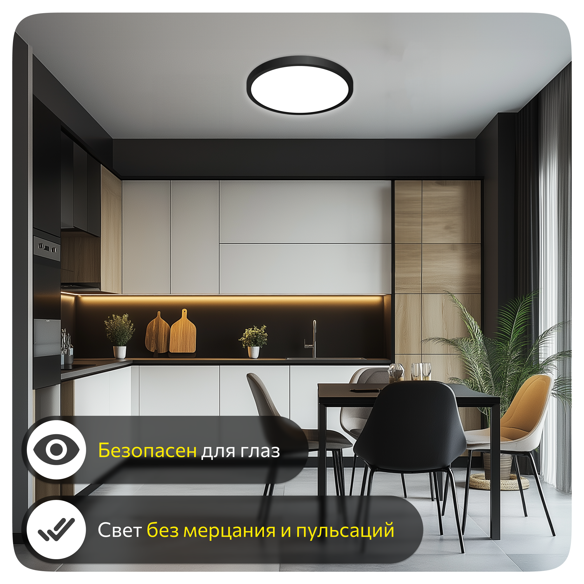 | Плюсы: | Удобный в установке, тонкий, отличное освещение и выбор из 3 цветовых температур |