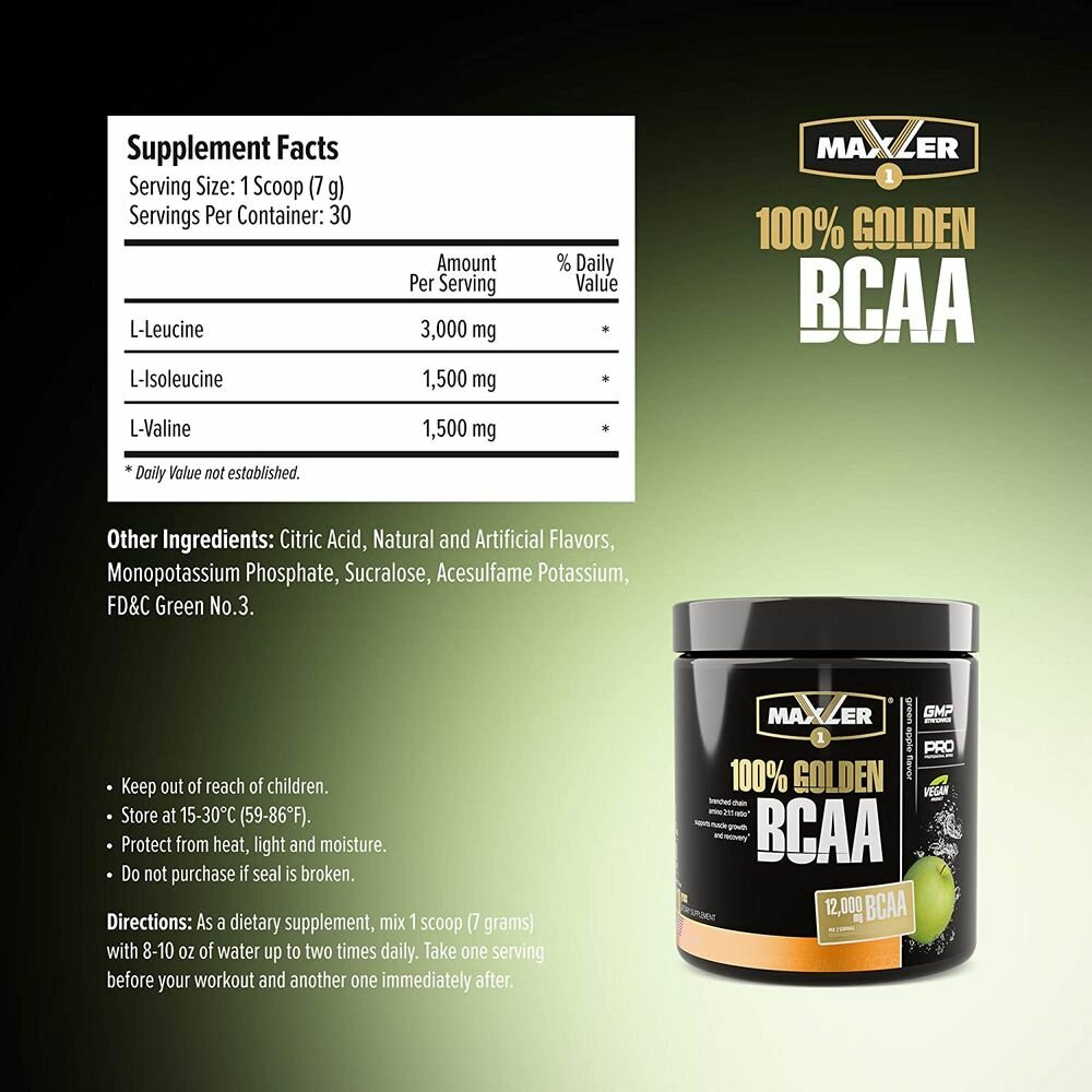 Аминокислоты Maxler 100% Golden BCAA - Зеленое яблоко, 210г, БЦАА в соотношении 2:1:1, В форме порошка - 30 порций