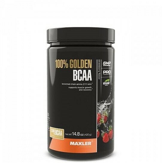 Аминокислоты Maxler 100% Golden BCAA - Клубника, 420г - БЦАА в соотношении 2:1:1 - В форме порошка - 60 порций