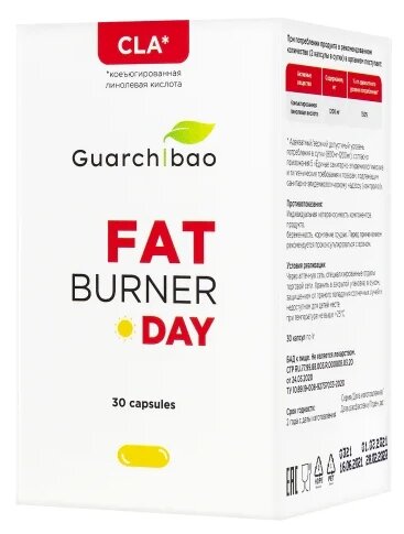 Жиросжигатель в капсулах дневного действия Guarchibao Fat Burner Day, 30 капсул, таблетки для похудения (CLA) интересное: