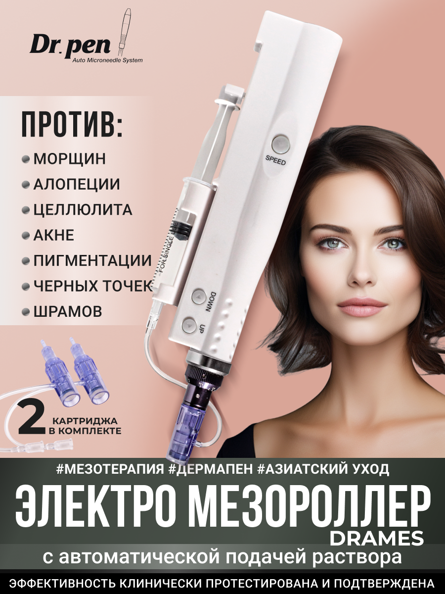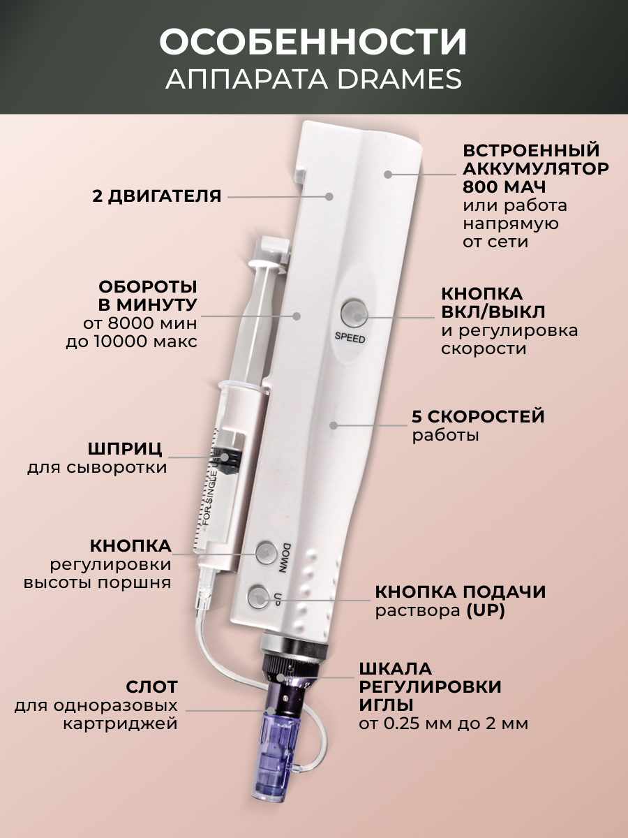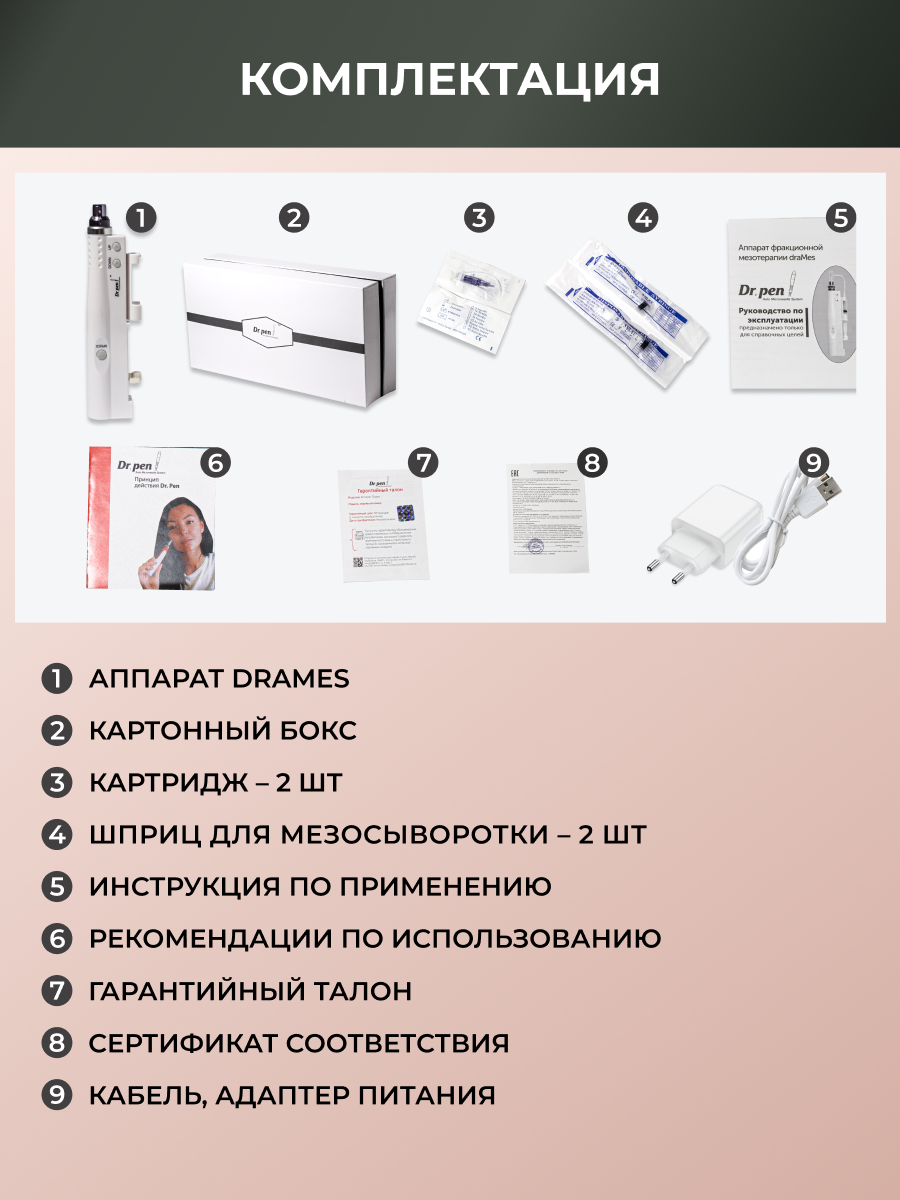 Dr.pen DraMes Medoderma Дермапен / Аппарат для фракционной мезотерапии с подачей раствора / электрический мезороллер для лица , белый интересное: