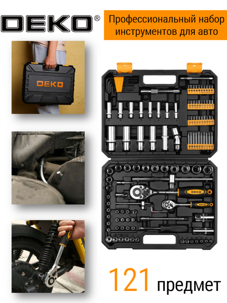 DEKO Профессиональный набор инструментов для авто DKAT121 в чемодане 121 предмет 065-0911