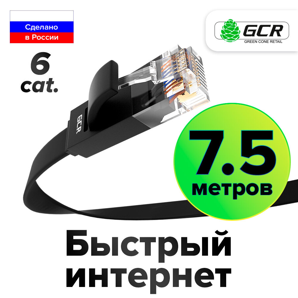 Купить Патч-корд плоский прямой GCR 7.5m UTP медь, кат.6, черный (GCR-LNC616-7.5m)
