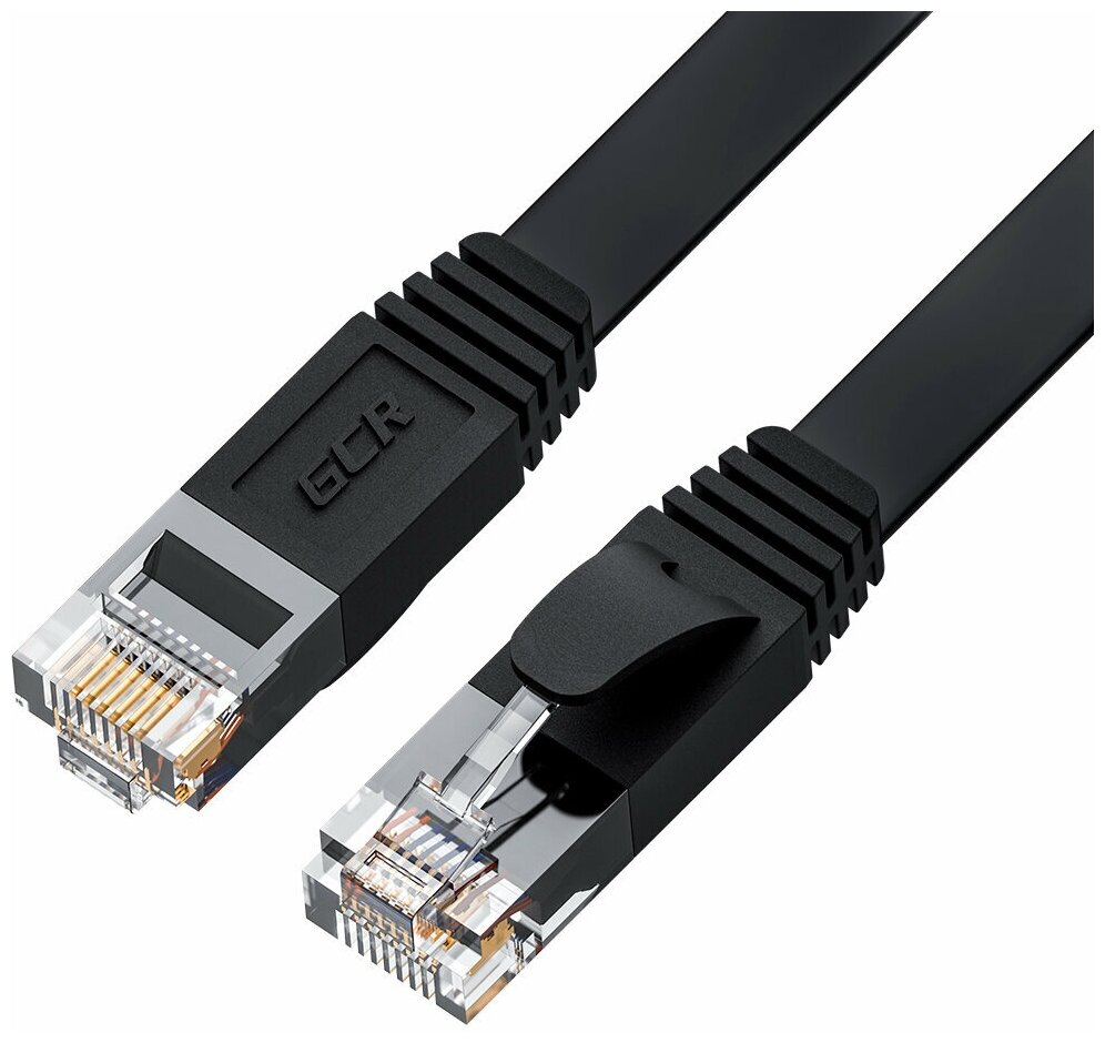 Патч-корд GCR PROF плоский UTP cat.6 10 Гбит/с RJ45 LAN контакты 24K GOLD (GCR-LNC62) черный 1.0м