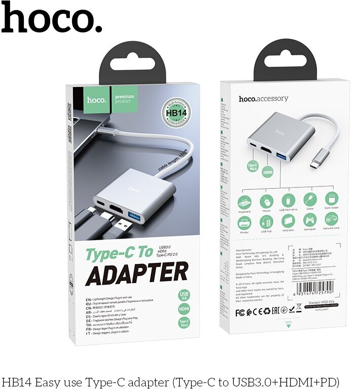 Купить Переходник HOCO HB14 для разъема Type-C, выход на USB3.0/HDMI/Type-C