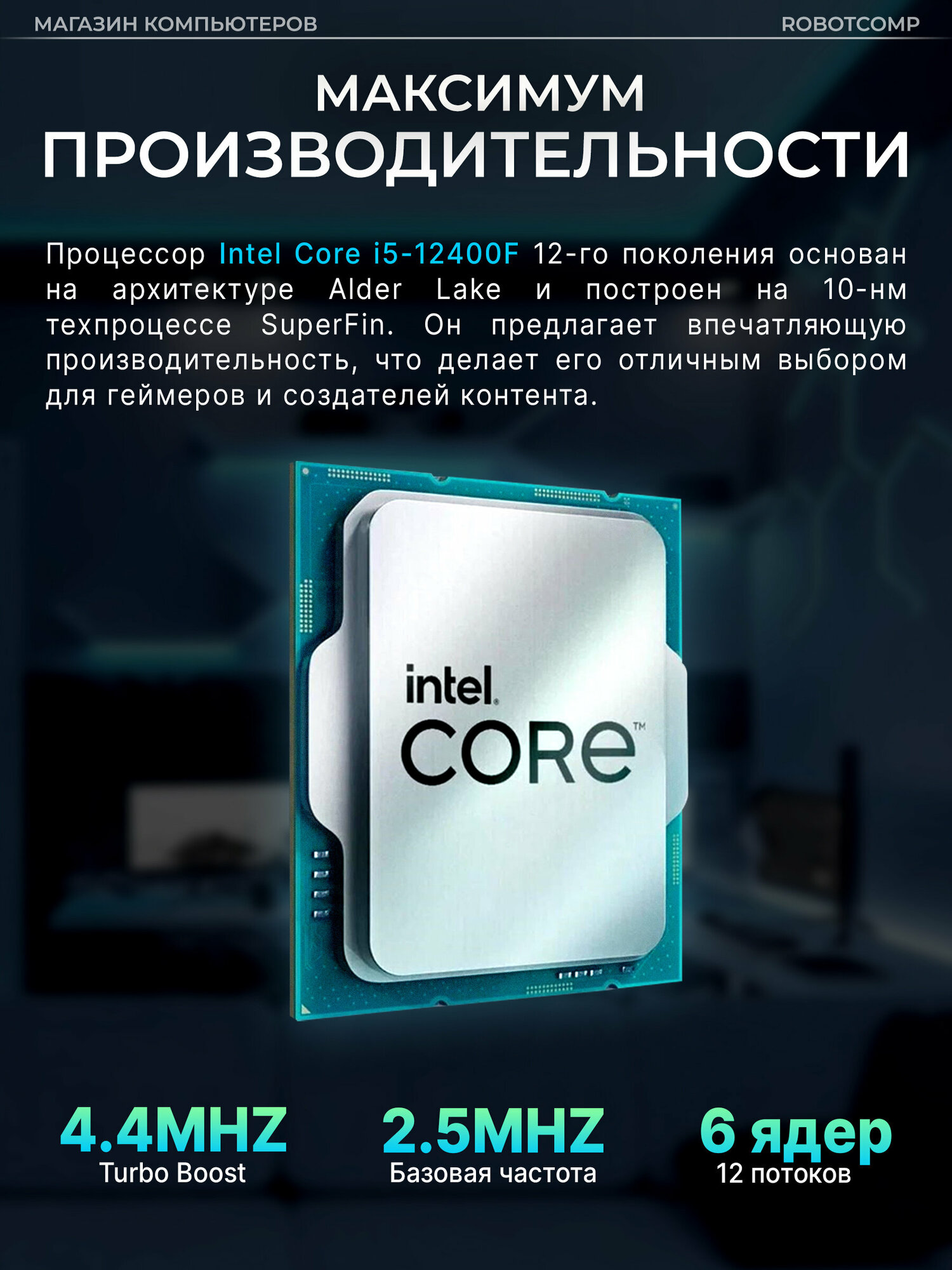 Игровой компьютер M16 3.0 Plus / Intel Core i5-12400F 2.5-4.4 GHz - 6 Core / 16GB / 960 Гб SSD / GeForce RTX 3050 8GB / B660M / 600W