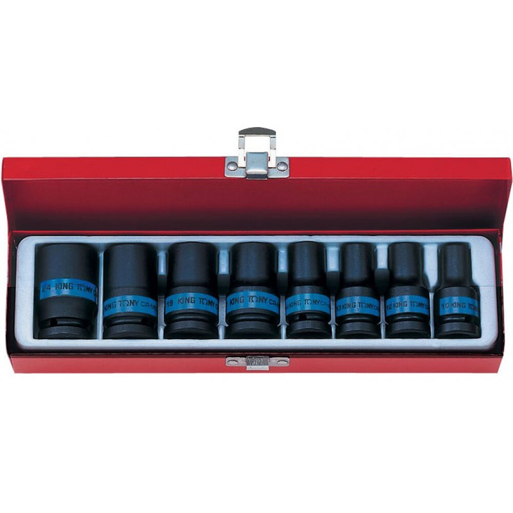 KING TONY Набор ударных торцевых головок 1/2", шестигранные, тонкостенные, 10-24 мм, 8 предметов 4413MP