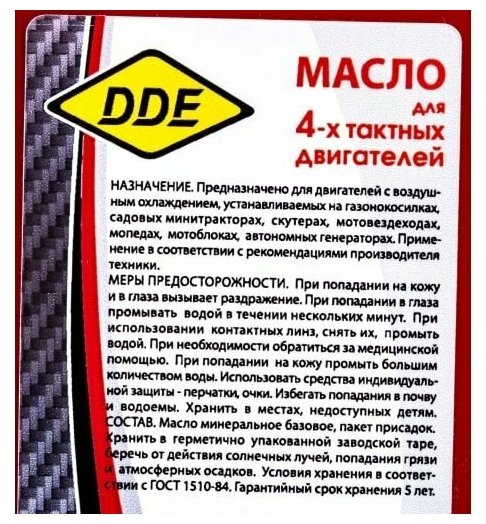 Масло 4-х тактное SAE30 DDE , API SJ/CF минеральное