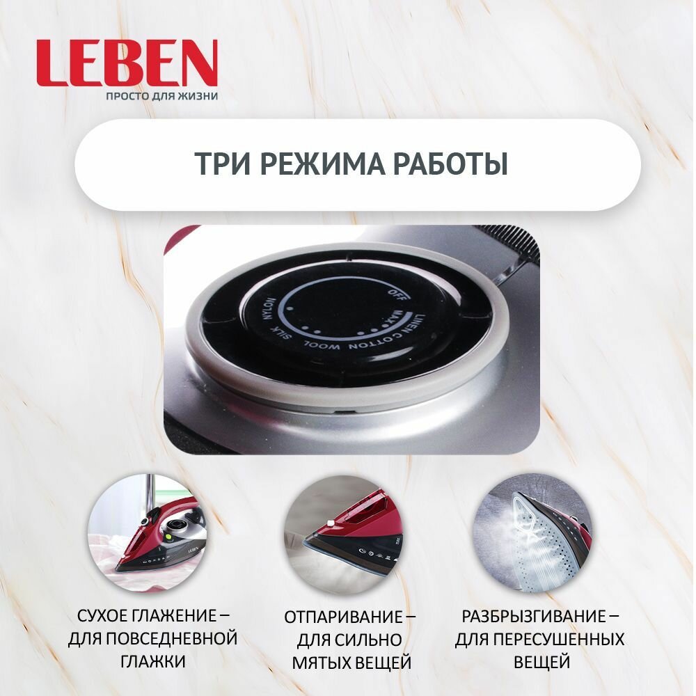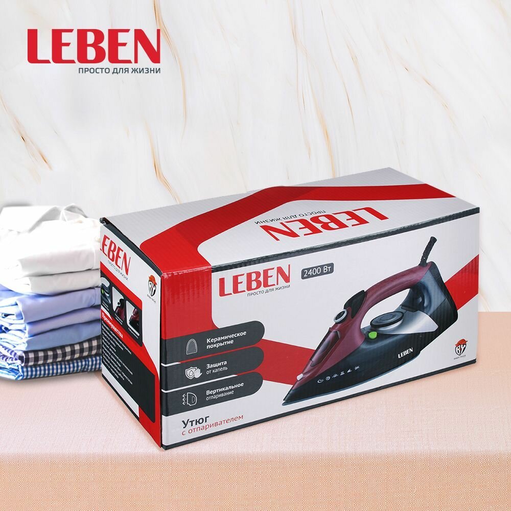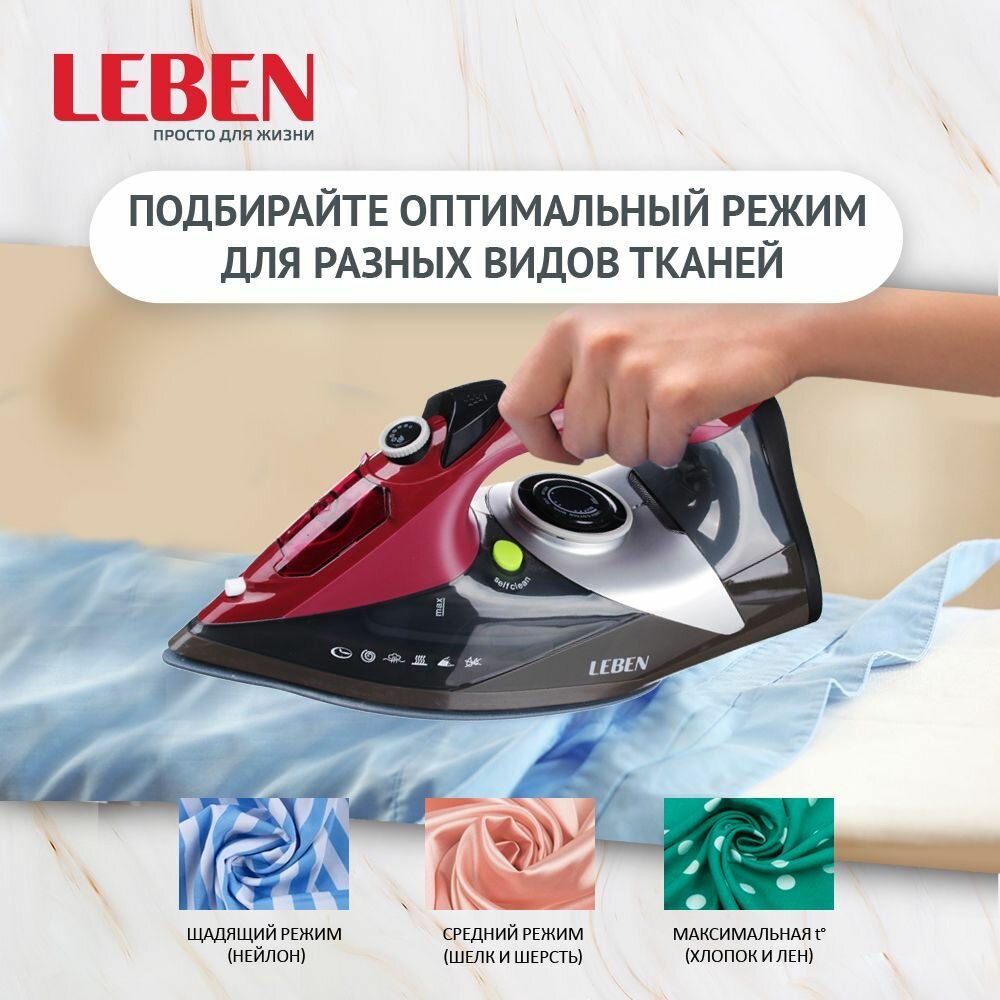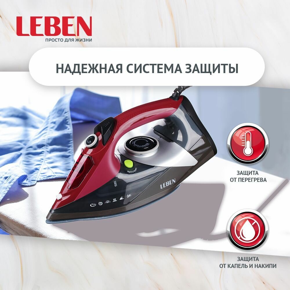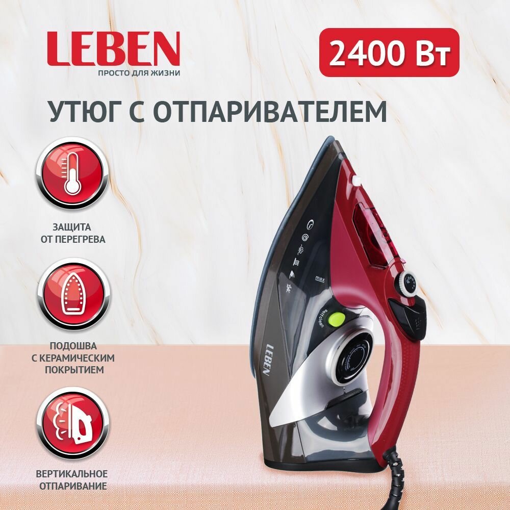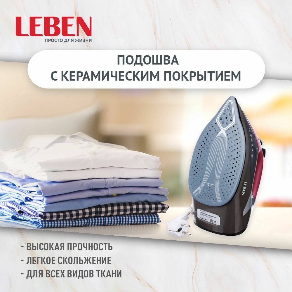 Утюг LEBEN 2400 Вт, подошва керамика, противокапельная система, бордовый/черный 249-021