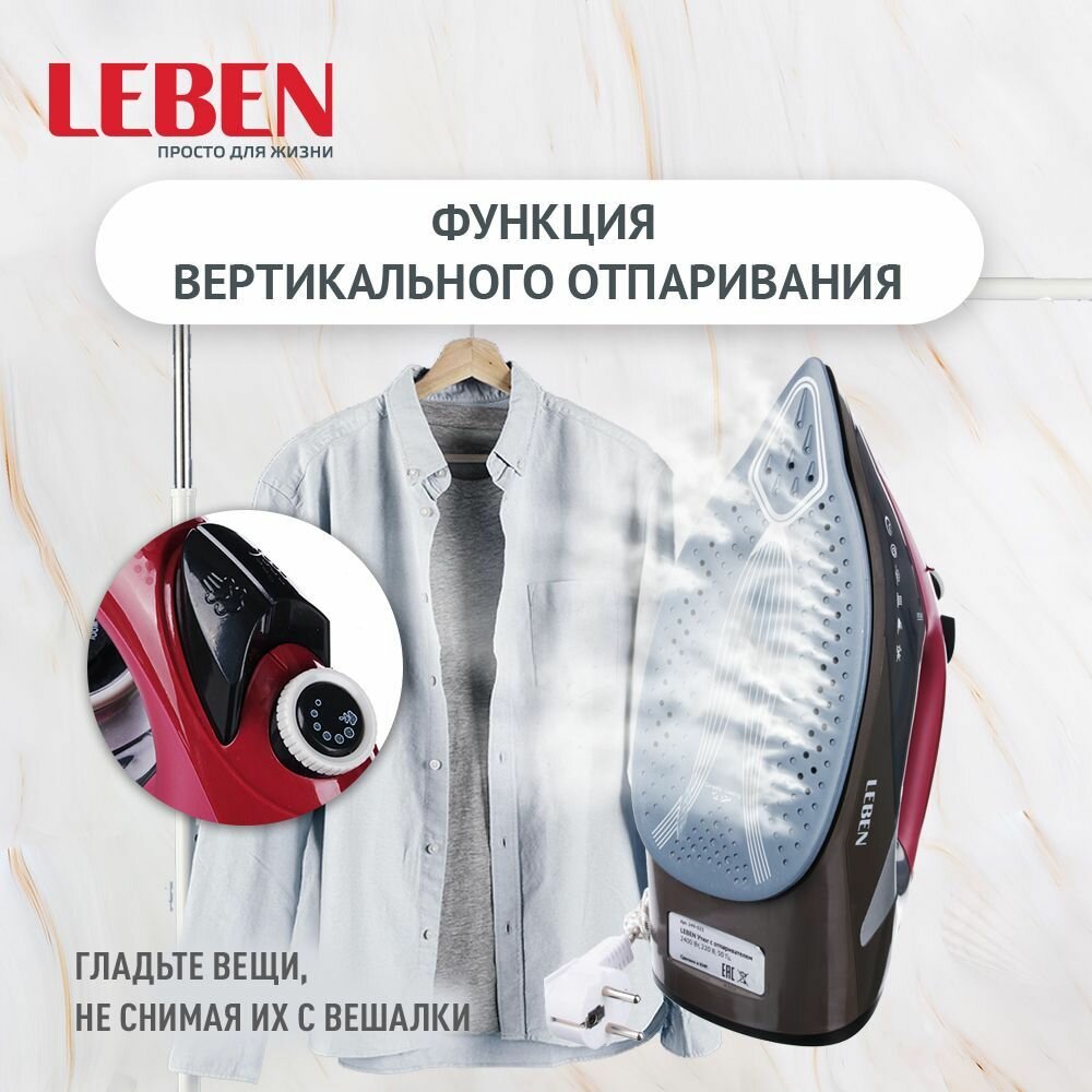 Утюг с отпаривателем 2400 Вт LEBEN, подошва - керамическое покрытие, вертикальное отпаривание, бордо