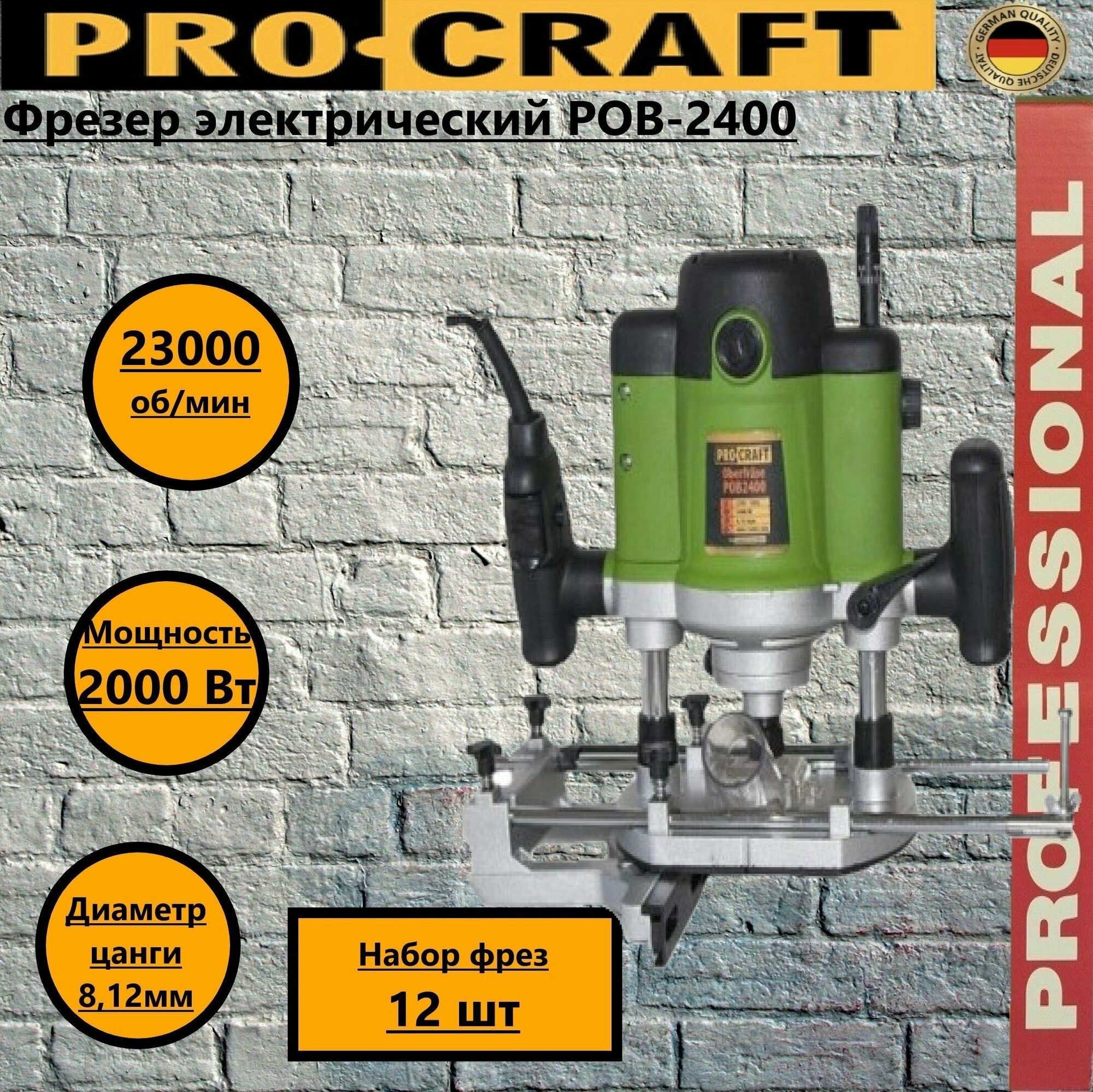 Фрезер электрический Procraft POB-2400 цанга 8/12мм, 2400Вт, 23,000об/мин интересное: