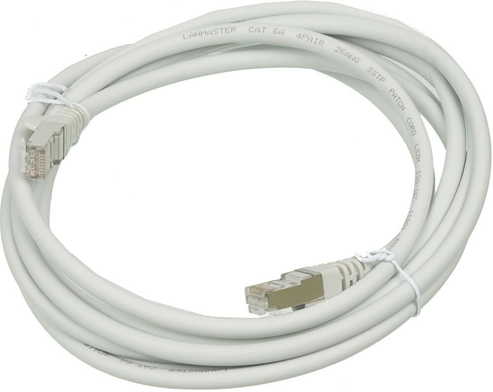 Патч-корд RJ45 - RJ45, 4 пары, S/FTP, категория 6A, 5 м, белый, LSZH, LANMASTER LAN-PC45/S6A-5.0-WH