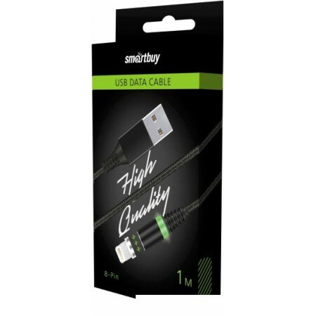 Купить Кабель зарядки с магнитным отсоединяемым наконечником 8-pin для Apple, длина 1м, до 2 А, черн. (iK-