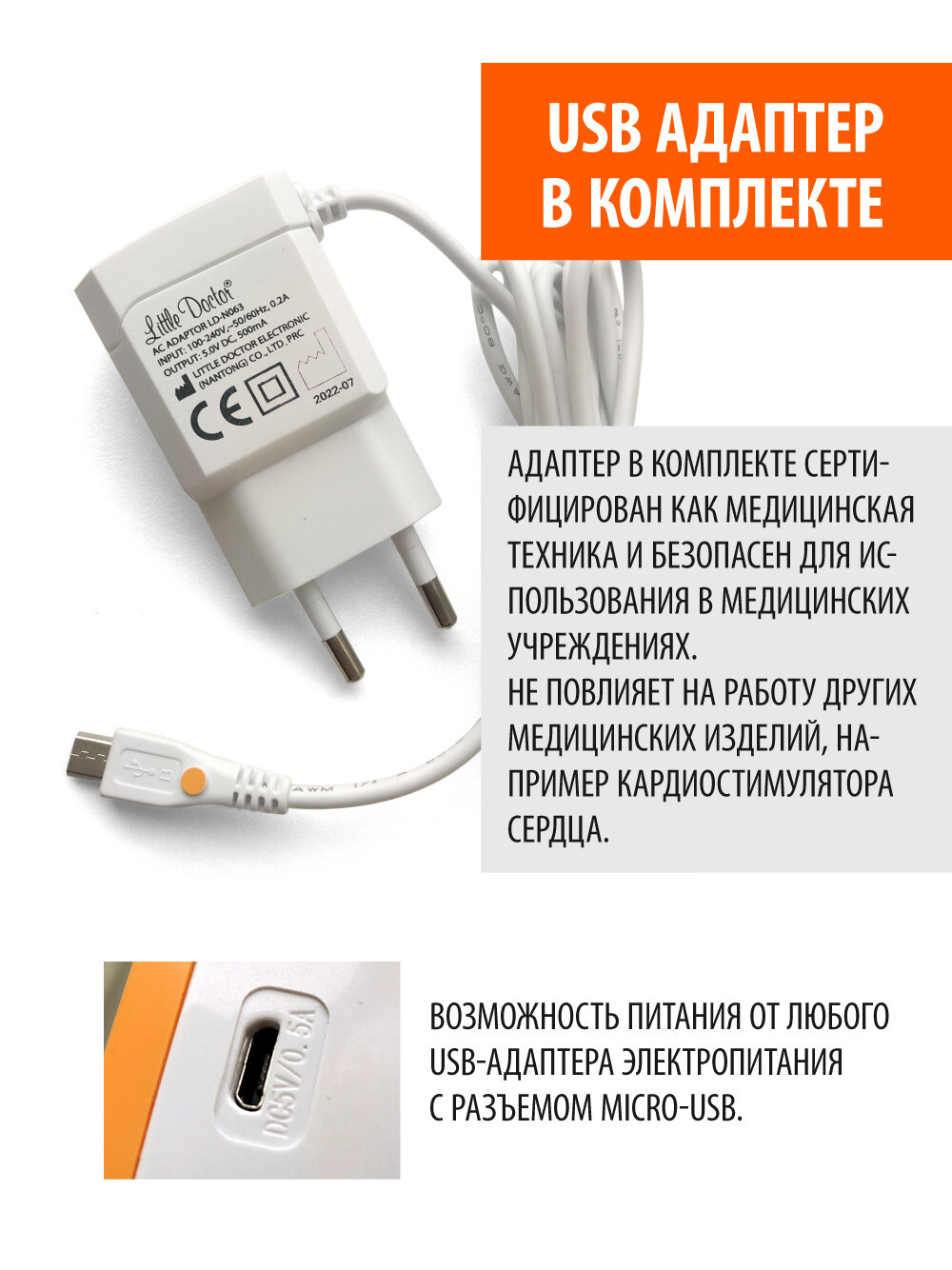 Тонометр автоматический Little Doctor LD 521A на плечо с USB-адаптером и универсальной манжетой